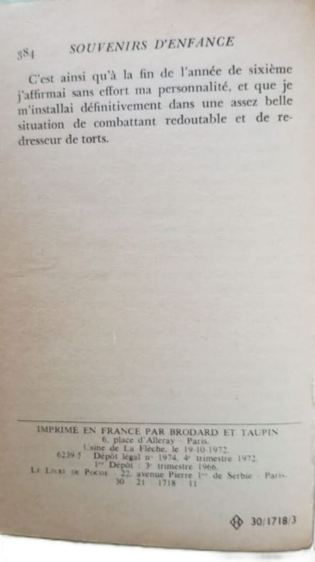 Tome1: La gloire de mon père, Tome 2: Le château de ma mère, Tome 3: Le temps des secrets, Tome 4: Le temps des amours Collection Fortunio N° 1, 2, 3 et 4. Annotations au stylo sur garde et dernière page du tome 4. Postface de De Fallois Bernard. Classification Dewey : 840.092-XXI ème siècle