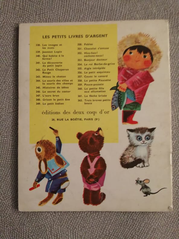 Editions des deux coqs d'or Album agrafé 1977 In-8 (15,5 x 19,5 cm.), album au dos agrafé, non-paginé (16 pages), illustrations couleurs in-texte ; coiffes et coins usés, quelques plis à la couverture un peu défraîchie, rares rousseurs, assez bon état. Livraison a domicile (La Poste) ou en Mondial Relay sur simple demande.