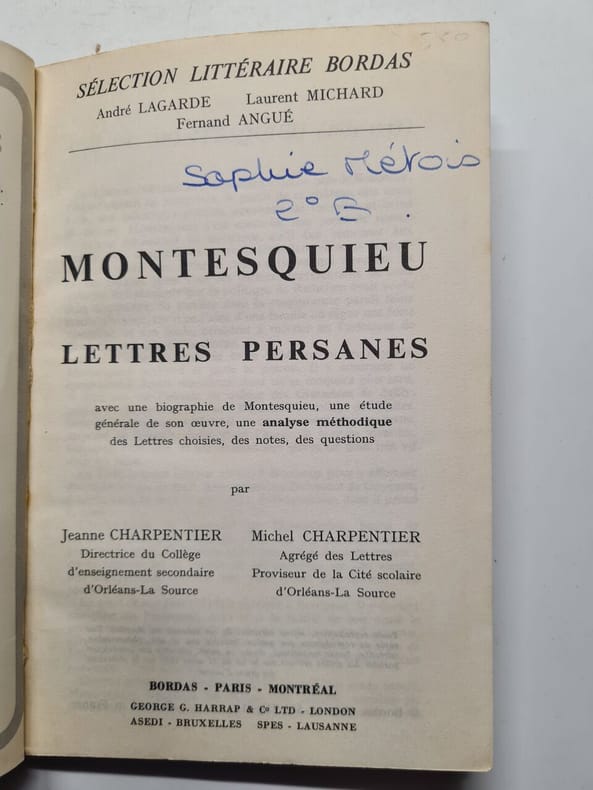 Dans cette édition, un supplément de 28 pages a été ajouté, qui porte à 161 lettres le nombre de lettres persanes (150 dans l'édition originale de 1721). Le supplément est introduite par Quelques réflexions sur les Lettres persanes. On croyait jusque là que cette édition était la dernière revue par l'auteur. Depuis les travaux d'Edgar Mass (Le Supplément aux Lettres persanes de 1754 : une édition qui n'a pas eu lieu, Actes du colloque de Bordeaux, publiés en 2005), on sait que cette édition est en réalité composite, le supplément n'ayant été imprimé qu'en 1758 dans l'édition en 7 volumes des oeuvres de Montesquieu, et joint à certains exemplaires de l'édition de 1754. Peu commun.