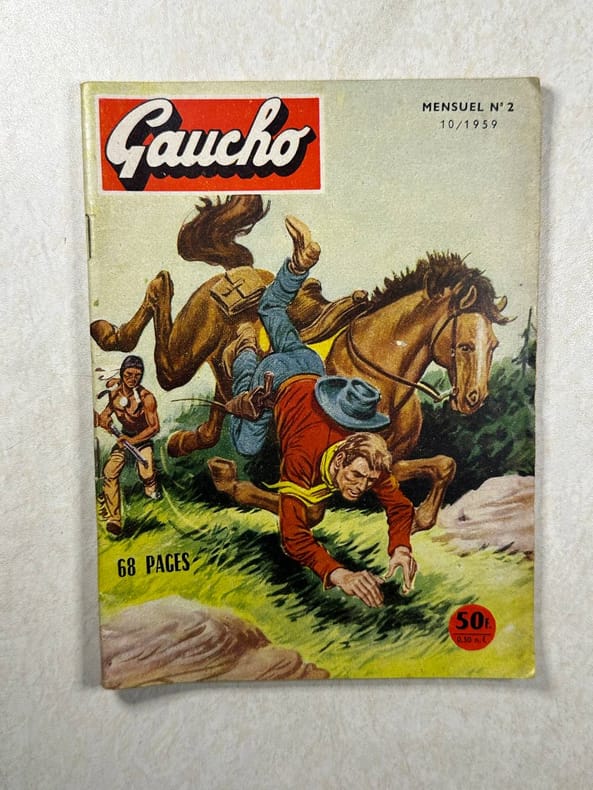 Gravure en couleurs de Charles Gillot (1853-1903). Numéroté CXCVII. D'après un cliché du photographe brésilien Marc Ferrez (1843-1922). Gravé à Paris dans les années 1890. Non encadré. Image : 210 x 150 mm Feuillet : 320 x 240 mm Ce cliché représente un Gaúcho, habitant de la pampa brésilienne qui fait frontière avec l'Uruguay et l'Argentine. Il apparaît à cheval dans une tenue qui rappelle celle des cow-boy, dont le mode de vie, associé aux troupeaux et aux grands espaces d'Amérique, ressemblait à celui du Gaúcho.