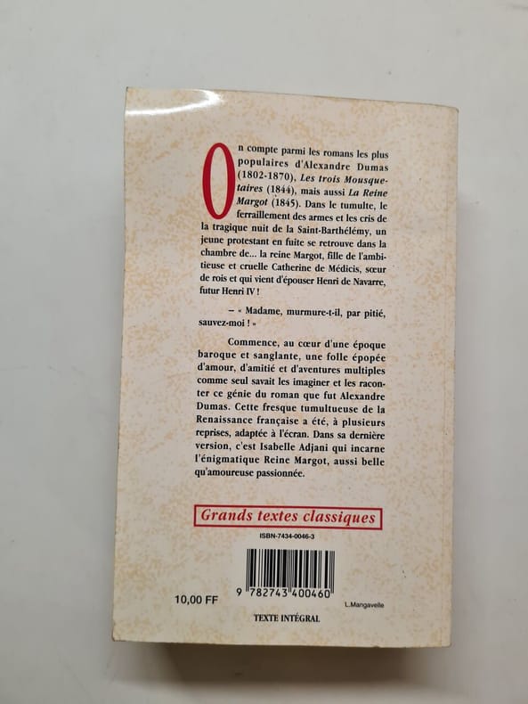 Alexandre Dumas. La reine Margot 1572. La France des guerres de religion est devenue le champ clos des grands seigneurs et des prétendants au trône. A Paris, le jeune roi protestant de Navarre, le futur Henri IV, vient d'épouser Marguerite de Valois, dite Margot; mariage politique qui n'empêche pas les Guise et le roi Charles IX de fomenter les horreurs de la Saint-Barthélemy. Sur les pas du jeune comte de La Mole, dont s'éprend éperdument la belle Margot, et de son compagnon, le tonitruant Annibal de Coconnas, nous entrons dans ce labyrinthe d'intrigues, d'alliances, de trahisons. Les poignards luisent sous les pourpoints. René le Florentin fournit les poisons à l'implacable Catherine de Médicis. Le vieux Louvre avec ses fêtes brillantes, ses passages secrets, son peuple de soldats et de jolies femmes, est le théâtre où se déploient en mille péripéties les jeux de l'amour, de la politique, de la haine. Le père des Trois Mousquetaires nous en donne une passionnante chronique, où sa pétulante bonne humeur survit aux plus sanglants épisodes.