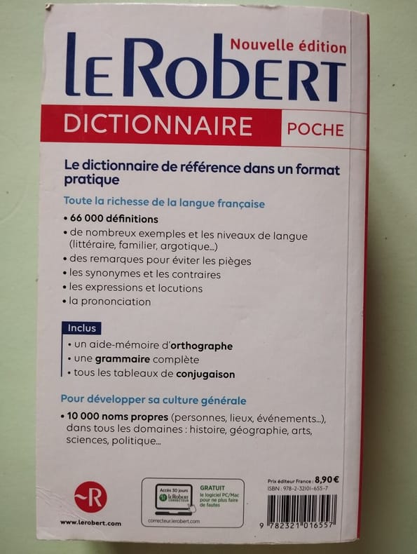 Dictionnaires Le Robert. 1993. In-12. Broché. Etat d'usage, Couv. légèrement pliée, Dos satisfaisant, Intérieur acceptable. 16+1376+47 pages. . . . Classification Dewey : 443-Dictionnaire français