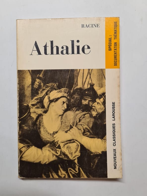 Miraculeusement sauvé du massacre où les siens ont péri, le jeune Joas est secrètement recueilli puis élevé par le grand prêtre Joadet par sa femme. Pour qu’il accède au trône de Juda qui lui était promis, il lui faut échapper à l’infidèle reine Athalie, sa grand-mère, qui, après le songe où elle s’est vue soudainement menacée, cherche à le faire périr. Commandée, comme Esther, par Mme de Maintenon qui voulait édifier les jeunes pensionnaires de sa maison de Saint-Cyr par des sujets de piété, Athalie est, en 1691, la seconde pièce que Racine tire de l’Écriture sainte. Tragédie messianique – Joas y est oint comme le Christ – mais également politique et morale, s’il est vrai qu’elle propose une leçon sur le bon usage du pouvoir, sa grandeur tient aussi au prestige de sa forme : oeuvre parlée et drame chanté grâce à la présence des chœurs et de la musique de Jean-Baptiste Moreau, elle marque un retour à la grande tragédie chorale de la Renaissance, mais évoque aussi l’opéra naissant. C’est la dernière pièce de Racine. vol broché en feuilles libres 25x20, avec une partie de l’emboîtage, ( sans la boite), 101pp. Jolie eau forte de Mariett, Exemplaire numéroté 1988, spécialement pour M. Mme Delassus. Les Bibliolâtres de France, 1946 ref/276