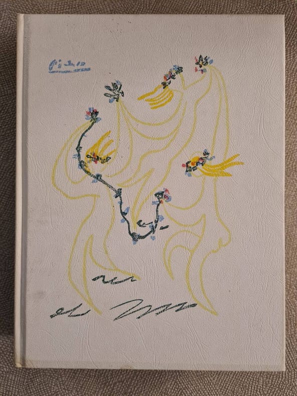 Livre. Traduit par Madame Mathilde Pomès. Illustrations de Grau-Sala. Reliure ornée d'un dessin original de Picasso. Editions Rombaldi (Collection : Prix Nobel 1904), 1960.