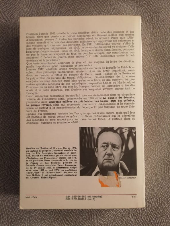 Avec “Les Passions et les Haines” et “L'Impitoyable Guerre civile”, ce troisième volume de “La Grande Histoire des Français sous l'Occupation” aborde les événements les plus tragiques de quatre années dramatiques. Il dévoile les passions antisémites qui conduisent aux rafles de juillet (en zone occupée) et d'août 1942 (en zone non occupée), au départ de convois d'hommes, de femmes, d'enfants depuis Drancy vers Auschwitz, et qui provoquent les réactions des Eglises, notamment l'Eglise catholique, influente à Vichy. Année sombre, 1942 s'achève sur l'espoir qu'offre le débarquement anglo-américain en Afrique du Nord le 8 novembre, mais aussi sur les tristesses de l'invasion de la zone libre, puis sur le sabordage de la flotte française à Toulon, flotte qui échappe aux Allemands, mais dont on se demandera toujours si – par une décision rapide – elle n'aurait pas pu rejoindre les Alliés. 1942 : année tournant de la guerre. 1943 : année de durcissement. Vaincus à Stalingrad, chassés bientôt de toute l'Afrique, les Allemands ont des exigences sans cesse accrues à l'égard de la France, comme de tous les pays occupés. Pour leurs usines, ils veulent des hommes : ce sera le Service du travail obligatoire. Pour maintenir l'ordre alors que les Français – qui devinent que le sort de l'occupant est scellé – renforcent la résistance, multiplient les attentats, créent les premiers maquis, les Allemands bénéficient, avec la Milice, d'une force supplétive qui mène le combat contre les communistes et les gaullistes (dont l'importance grandit depuis que de Gaulle a éliminé Giraud à Alger). A l'aide de documents irréfutables, Henri Amouroux reconstitue avec émotion et précision une "impitoyable guerre civile".