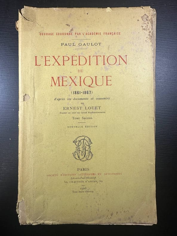 1874 Librairie militaire de J. Dumaine, libraire-éditeur, Paris 1874, fort in8, reliure demi chagrin rouge,dos orné,plats percaline passé , 770 pages plus 22 pages sur la carte du Mexique, atlas manquant,
