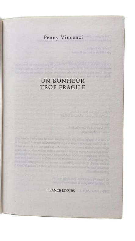 2002 2002. 2 Penny Vincenzi: Un bonheur trop fragile / France Loisirs 2002