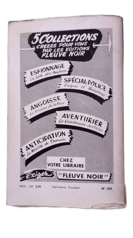 "EDITIONS FLEUVE NOIR COLLECTION "" ESPIONNAGE "" N° 335. 1962. In-12. Broché. Bon état, Couv. convenable, Dos satisfaisant, Intérieur frais. 219 pages.. . . . Classification Dewey : 843.0872-Le roman policier"