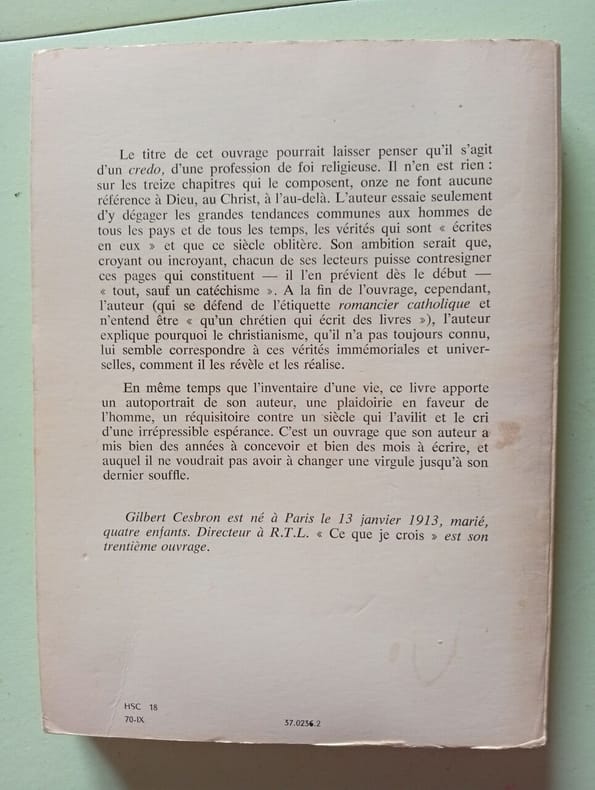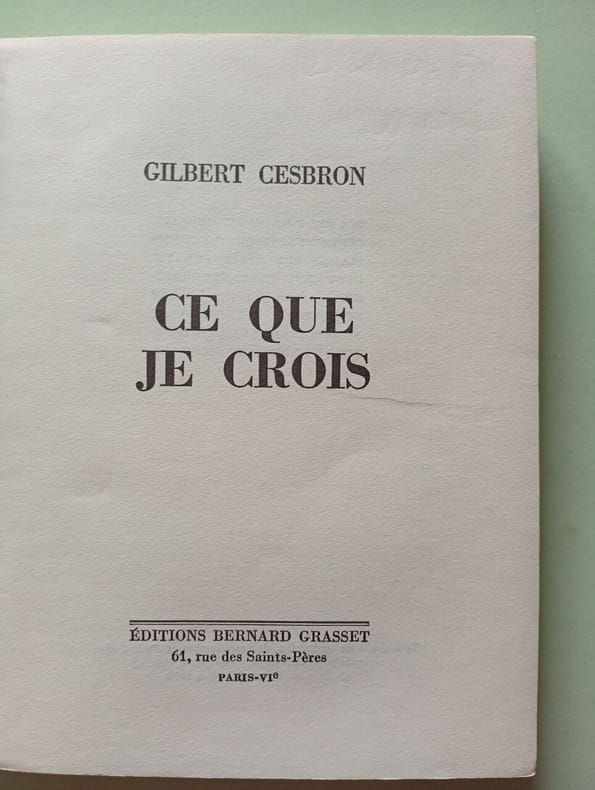 Grasset / Ce que je crois 1984 318 pages in8. 1984. Broché. 318 pages.