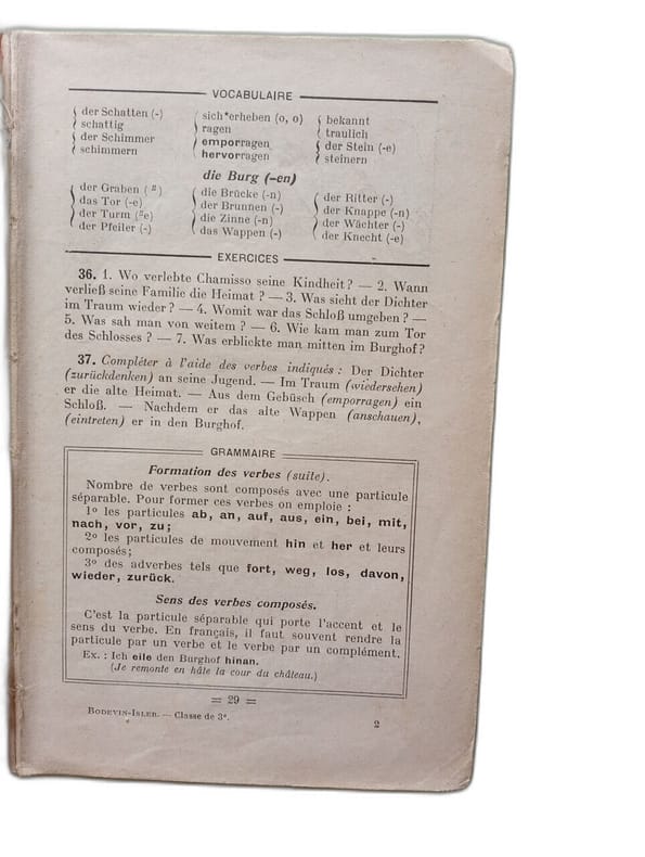 Masson et cie. 1949-1954. In-8. Cartonné. Etat d'usage, Tâchée, Coiffe en pied abîmée, Papier jauni. 203 + 44 pages (memento grammatical) - nombreuses illustrations en noir et blanc dans le texte - coins frottés.. . . . Classification Dewey : 372.65-Livre scolaire : langues