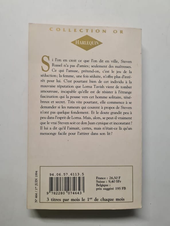 COLLECTION HARLEQUIN SERIE D OR N° 464. 1994. In-12. Broché. Bon état, Couv. convenable, Dos satisfaisant, Intérieur frais. 278 pages.. . . . Classification Dewey : 820-Littératures anglaise et anglo-saxonne