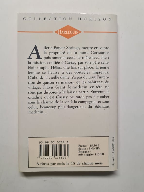 COLLECTION HARLEQUIN COLLECTION HORIZON N° 1167. 1993. In-12. Broché. Etat d'usage, Couv. légèrement pliée, Dos satisfaisant, Intérieur frais. 150 pages.. . . . Classification Dewey : 820-Littératures anglaise et anglo-saxonne