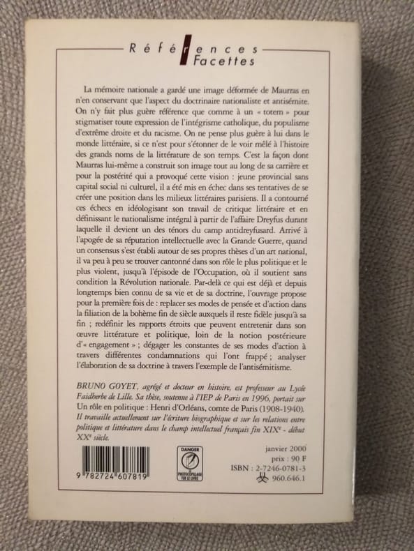 Sommaire : La violence et la mesure par Charles Maurras - Règne et interrègne par C. Maurras - Le carrefour des sept chemins à Martigues par C. Maurras - Le salon des Boissard par Hélène Maurras - Face à l'idolâtrie démocratique. Le réalisme de Maurras par Gilbert Tournier - Charles Maurras et l'enseignement par François Natter - L'Empirisme organisateur de Charles Maurras par Pierre Bérard - L'évation de Léon Daudet - La tombe de Léon Daudet par Paul Dresse - Louis Martin, mon père par Marie-Madeleine Martin - Charles Maurras à la recherche de Dieu par A. Egret - Au Quartier politique de la Santé par Maurice Pujo - Charles Maurras et le nationalisme portugais par Antonio J. de Brito - Sainte Thérèse et Jacques Bainville par Jules Artur.. Classification Dewey : 840-Littératures des langues romanes. Littérature française