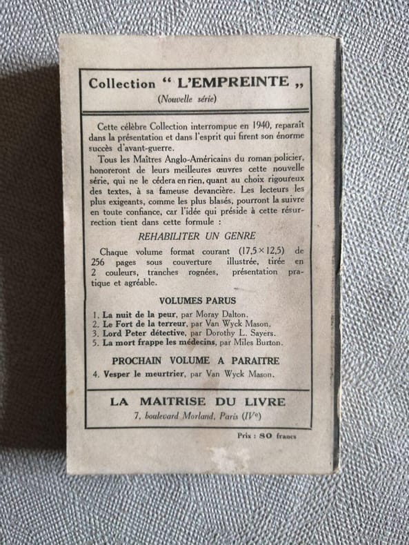 La Maitrise du Livre Collection l'Empreinte N°5. 1947. In-12. Broché. Etat d'usage, Couv. légèrement passée, Coiffe en pied abîmée, Quelques rousseurs. 252 pages, premier plat illustré en noir et blanc. Traduit de l'Anglais par Henri Thies. Dos frotté.. . . . Classification Dewey : 820-Littératures anglaise et anglo-saxonne