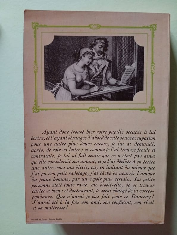 Illustrée de 26 compositions au pochoir d'après les planches originales de Paul-Emile Bécat, orné de lettrines et culs de lampe. célèbre roman épistolaire écrit par Pierre Choderlos de Laclos, un écrivain français du XVIIIe siècle. Le livre est publié en 1782 et est immédiatement devenu un classique de la littérature française. Voici une description du livre : 1. Genre : "Les Liaisons dangereuses" est un roman épistolaire, ce qui signifie qu'il est écrit sous la forme d'une série de lettres échangées entre les personnages du livre. Ce format offre une perspective intime sur les pensées, les émotions et les intrigues des personnages. 2. Intrigue : L'histoire se déroule dans la haute société française du XVIIIe siècle. Elle tourne autour de deux personnages principaux, la marquise de Merteuil et le vicomte de Valmont, qui sont tous deux des aristocrates libertins. Ils décident de s'engager dans un jeu cruel de séduction, de manipulation et de trahison, visant à détruire les réputations et les vies d'autres membres de la noblesse. 3. Thèmes : Le roman explore des thèmes tels que la séduction, le pouvoir, la corruption, la moralité, l'hypocrisie et la décadence de la noblesse française pré-révolutionnaire. Il offre également une critique acerbe de la société de l'époque. 4. Style littéraire : Laclos utilise un style d'écriture élégant et raffiné pour dépeindre les intrigues et les manipulations des personnages. Le langage subtil et ironique des lettres crée un contraste fascinant avec les actions souvent choquantes des personnages. 5. Influence et héritage : "Les Liaisons dangereuses" est considéré comme un chef-d'œuvre de la littérature française. Il a eu une influence durable sur la littérature, le théâtre et la culture populaire, avec de nombreuses adaptations et réinterprétations au fil des ans. Il continue de fasciner les lecteurs en raison de ses personnages complexes et de son exploration des aspects les plus sombres de la nature humaine. En résumé, "Les Liaisons dangereuses" de Pierre Choderlos de Laclos est un roman épistolaire captivant qui plonge le lecteur dans les intrigues machiavéliques et les jeux de pouvoir de la haute société française du XVIIIe siècle. C'est un classique de la littérature mondiale qui aborde des thèmes intemporels et offre une exploration fascinante de la psychologie humaine. Exemplaire sur Rives numéroté 376/890 Complet en deux volumes in-8, 21x15, brochés, sous étui ( petite usure), état neuf, 265, 265pp. Paris, Éditions Athéna, Paul Dupont, 1949.