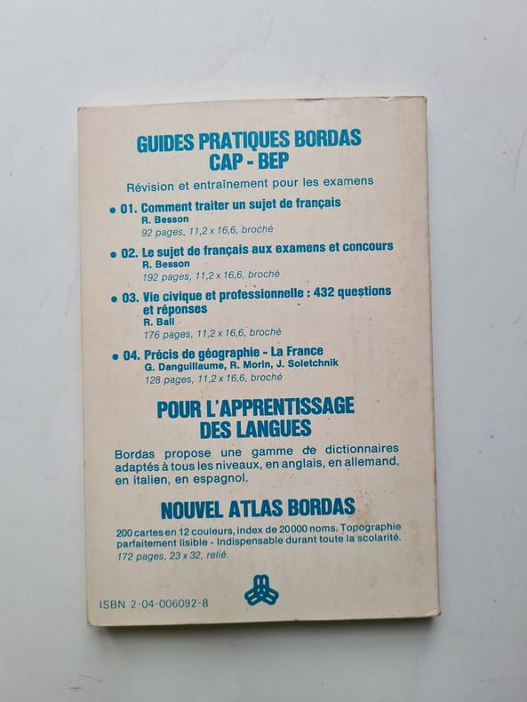 BORDAS. . In-12. Broché. Etat d'usage, Couv. défraîchie, Dos frotté, Intérieur acceptable. 256 pages. traces d'adhésif sur les contre plats, la 1ère et dernière page. Quelques traces de stylo sans conséquences réelles sur la lecture. exemplaire de travail.. . . . Classification Dewey : 372.65-Livre scolaire : langues