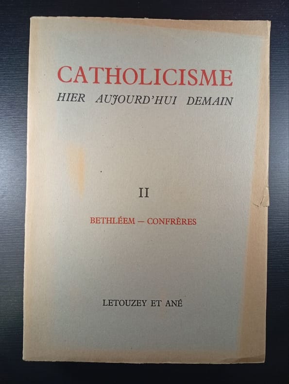 LETOUZEY ET ANE. VERS 1950. In-4. Broché. A relier, Livré sans Couverture, Dos abîmé, Non coupé. NUMEROTE PAR COLONNES (2 colonnes par page) Colonnes 1 à 544 et 569 à 1527. Manque celle comprises entre 544 et 569. Plats manquants : Ouvrages en 3 parties désolidarisées (de plusieurs cahiers) + quelques pages désolidarisées. Pliures. Manques en dos. VENDU EN L'ETAT.. . . . Classification Dewey : 230-Christianisme. Théologie chrétienne