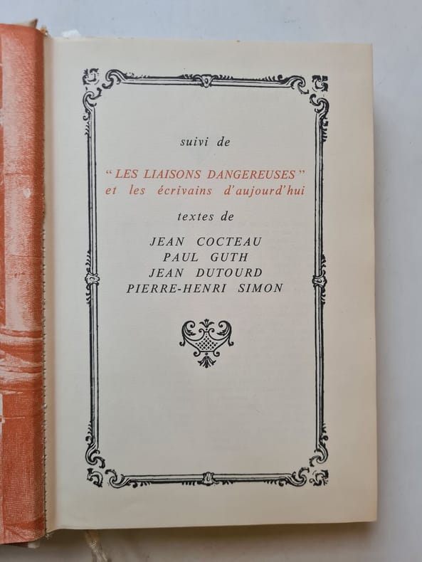 Editions René Juillard 1960. In-8 broché de 168 pages au format 19,5 x 14,5 cm. Couverture rempliée avec photographie de Gérard Philippe. Dos carré. Plats et intérieur frais. Préfaces de Roger Vadim et Roger Vailland. Postface de Claude Brulé. Découpage du film de Roger Vadim, avec dialogues de Roger Vailland, Roger Vadim et Claude Brulé, accompagné de nombreuses photographies en noir, in et hors texte, extraites du film. Rare édition originale en superbe état général. Adaptation en film par Roger Vadim, Roger Vailland et Claude Brulé du grand classique de la littérature française " Les Liaisons dangereuses " de Pierre Choderlos de Laclos. Film réalisé par Roger Vadim avec dans les rôles principaux Gérard Philipe, Jeanne Moreau, Annette Stroyberg ( Annette Vadim épouse de Roger Vadim ), Simone Renant, Jean-Louis Trintignant, Nicolas Vogel, Jeanne Valérie, Boris Vian, etc… La musique originale était interprété par Thelonious Monk, Charlie Rouse, Sam Jones, Art Taylor, Barney Wilen, Art Blakey's Jazz Messengers, Lee Morgan, Bobby Timmons, Jymie Merritt. Précieux exemplaire accompagné de 2 belles cartes postales en noir et blanc dédicacées par Simone Renant, photographiée au Studio Harcourt et S.E.R.P. Cette dernière interprêtait Madame de Volanges dans le film.