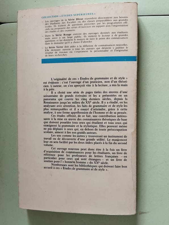 Collection 'Etudes Supérieures', 63. Classification Dewey : 445-Grammaire française