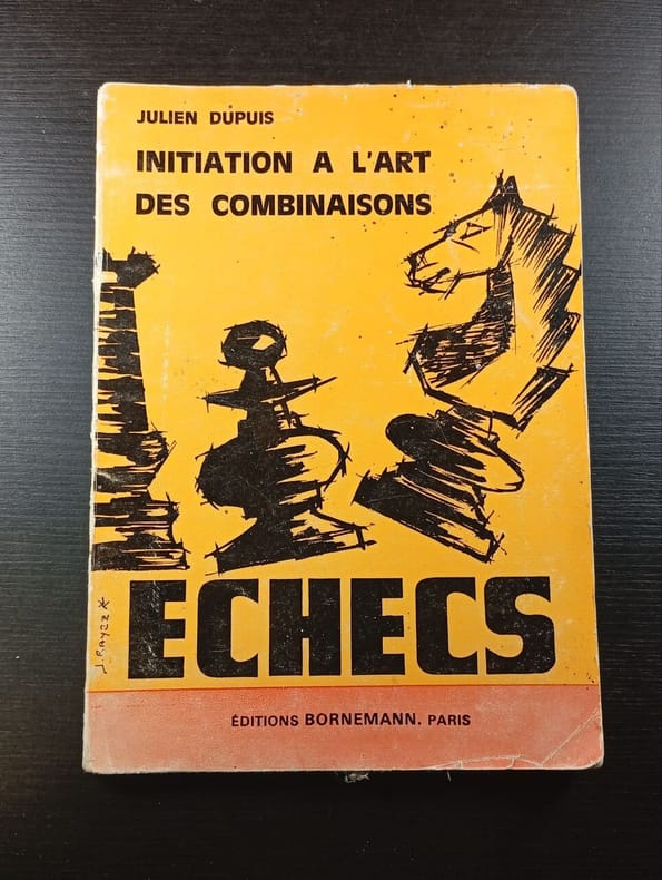 Contents, Chapitres : Initiation à l'art des combinaisons - Les ouvertures, les sacrifices - Les clouages - Idée géométrique et relations linéaires - Elimination de défenses, déviation, interception - L'interception - Les cavaliers - Les pions - Les doubles menaces quelques rousseurs sur la couverture, sinon bon etat