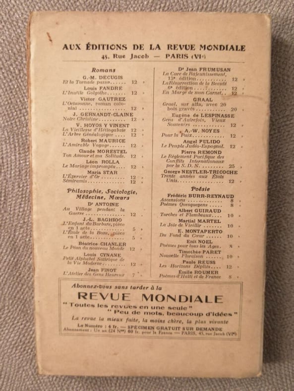 Rapidité d'envoi Tous nos articles sont expédiés le jour même de la confirmation de la commande Soin de l'emballage Un soin particulier est apporté à l'emballage, vos objets voyagent en toute sécurité. A votre écoute Si toutefois un incident devait survenir lors de l'acheminement de votre paquet, n'hésitez pas à nous contacter, nous mettrons tout en oeuvre pour vous satisfaire, en vous proposant un retour, un remboursement ou toute autre soluton à votre convenance. Professionnalisme Les livres que nous vendons sont pour la plupart des livres anciens, nous tâchons d'être le plus objectif possible quant à leur état.