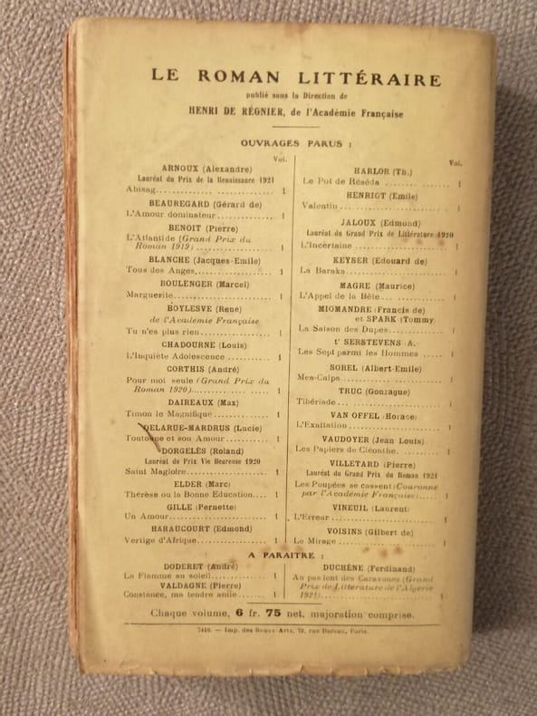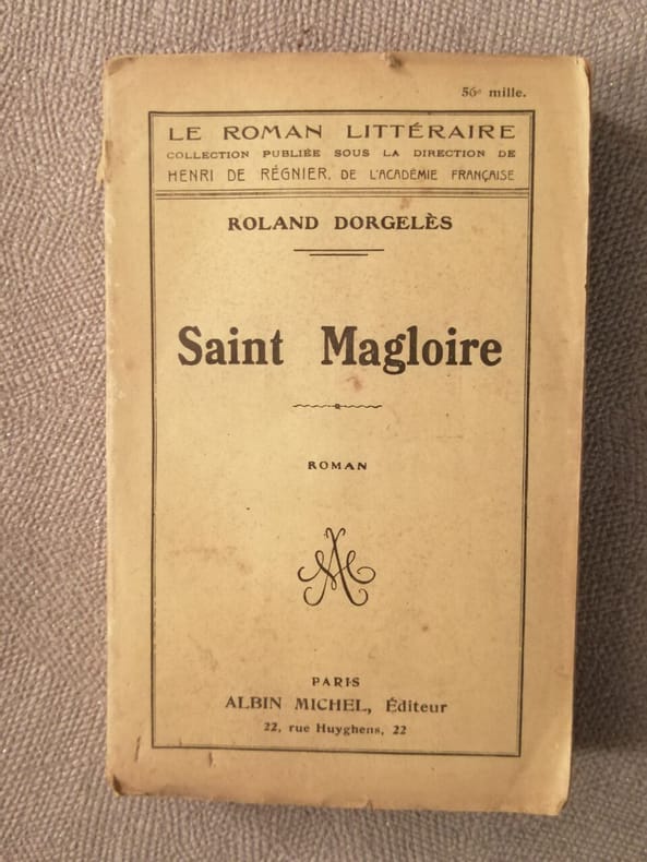 Saint Magloire Roman de Roland Dorgelès chez Albin Michel, Éditeur, Le roman littéraire en 1922. Édition originale numérotée 147/200/1150 sur japon, Grandes marges. Le livre mesure 14x20 cm et pèse 0,600 kg (c) pour 379 pages. Reliure d'époque cartonnée. Le livre est en très bon état, frottis, légère odeur de tabac.