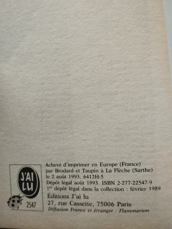 J'ai lu 1989 200 pages in12. 1989. Broché. 200 pages.