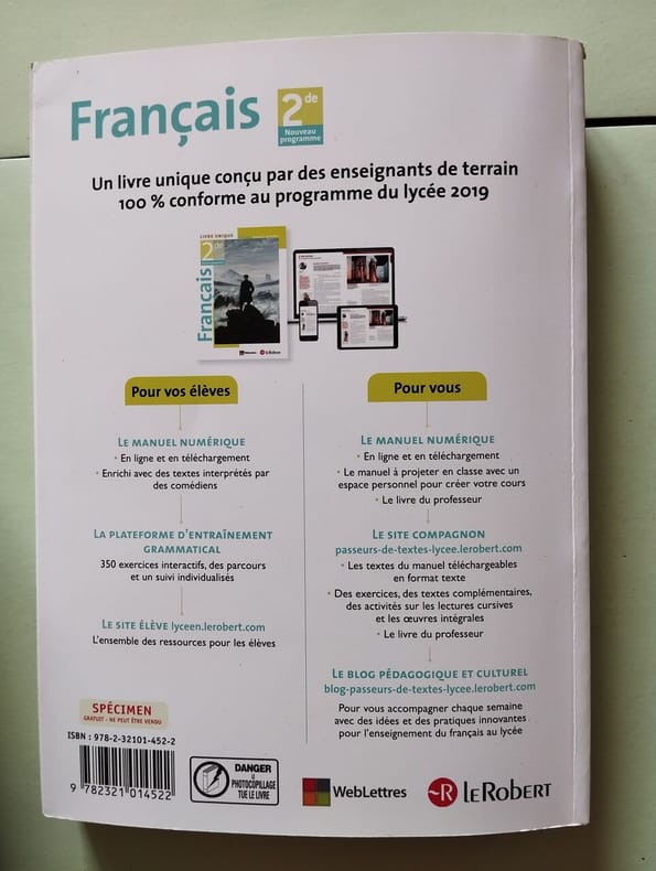 CAROLINE D'ATABEKIAN- MARIE HELENE DUMAITRE- VALERIE MONTFORT- ETIENNE LETERRIER- SANDRA GALAND LECARDONNEL- CELINE DUNOYER- SANDRA MONTANT- DELPHINE BARBIRATI- SYLVAIN PEROT ... Classification Dewey : 372.6-Livre scolaire : français