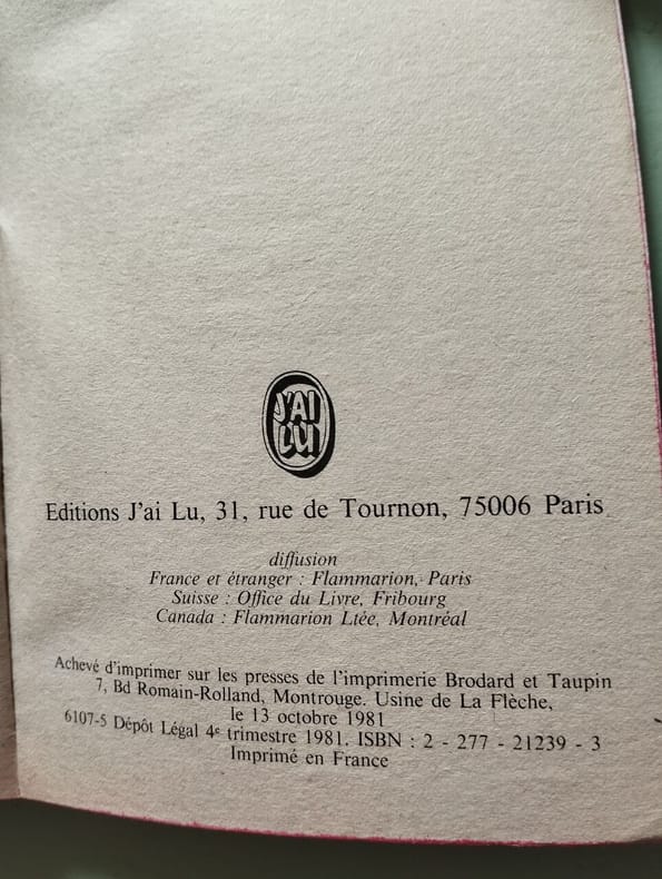 J'AI LU 1981 224 pages 10 8x1 2x16 4cm. 1981. Broché. 224 pages.