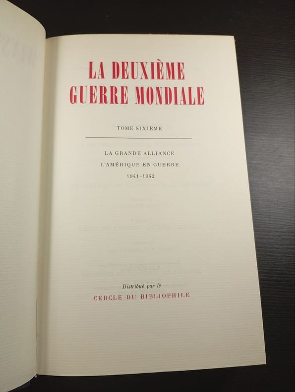 Table - TOME I : La victoire et la paix (1918-1919) - Le traité de paix - L'illusion de la paix - Les attentats à la paix (Le nazisme). - La déclaration de guerre - La guerre de septembre 1939 à mars 1940 - Les invasions - L'invasion de la France - L'armistice (16-25 juin 1940). - Échec à l'Ouest : la victoire Britannique - Echec en France - L'Axe Berlin - Rome - Tokyo. - La campagne de Russie (juin 1941 à octobre 1942). - Le front méditerranéen (la libération de l'Afrique du Nord). - Appendice : Éphémérides des principaux événements politiques et militaires de 1939 à fin 1945. - L'effroyable bilan - Le Franc les étapes de sa dévaluation. Tables TOME II : Le monde de la liberté : les États-Unis - La Grande-Bretagne. - Les pays occupés : la France. La résistance Tchèque. La résistance Yougoslave. Les camps de déportation, de représailles, d'extermination. Les évasions (Général Giraud, l'épopée du Commandant Sahara). - L'attaque en méditerranée 1/ Maroc, Algérie, Tunisie. 2/ Sicile, Italie du sud, Corse. - L'attaque à l'Ouest : 1/ Le débarquement sur les plages normandes. 2/ La bataille de Normandie. - La libération de la France : Les maquis et la résistance. Le débarquement en Provence et son exploitation. - La conquête de l'Italie - Vers le Rhin et l'Allemagne occidentale - La libération de la Russie - La fin du IIIe Reich - La guerre sur mer - L'agression Japonaise - Evolution de la tactique et de l'armement au cours de la guerre 1939-1945 (évolution de l'infanterie, de l'artillerie, la cavalerie et les blindés, le Génie dans la guerre moderne, les transmissions, les fortifications et les systèmes défensifs, fortifications de campagne, la défense anti-aérienne). - La marine et son matériel dans la guerre. - L'aviation dans la guerre - Application des progrès scientifiques à l'armement - Le radar - Les bombes volantes - L'atome en physique et en chimie - Appendice : Éphémérides des principaux événements politiques et militaires 1946-1947..................RARE.....en parfait état (as new condition). parfait état