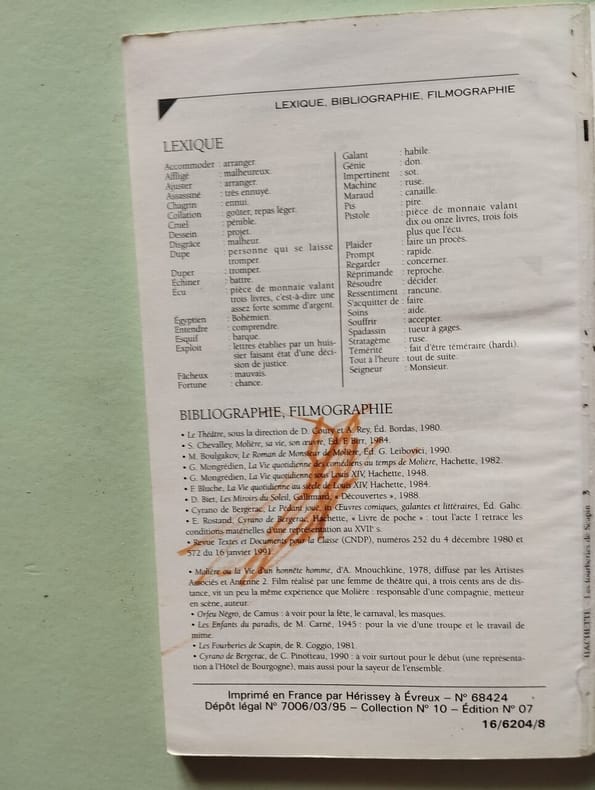 Classiques Hachette, N°1. 1992. In-12. Broché. Bon état, Couv. convenable, Dos satisfaisant, Intérieur bon état. 127 pages. 1er plat illustré d'une photo en couleur. Illustré de photos en noir et blanc.. . . . Classification Dewey : 840.04-XVII ème siècle