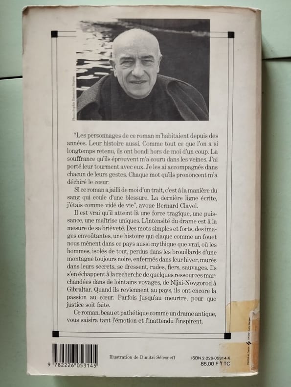 France Loisirs 1992 1998 pages in8. 1992. Cartonné sous Jaquette. 1998 pages. 1844 dans le Haut Jura sur le plateau du Grandvaux près de Dole : après un long voyage Ambroise Reverchon roulier de son état (l'ancêtre de nos routiers internationaux) rentre à la ferme familiale. Sa fille Emilienne l'y accueille et avec cette rudesse propre aux montagnards solitaires durs à la tâche et sans état d'âme elle lui apprend que sa mère est morte trois mois auparavant et qu'elle-même attend un enfant. Ambroise tout aussi laconique lui demande alors simplement de ramener le père de l'enfant à naître. Ce dernier Léo Seurot un boisselier originaire de Dôle a pris la fuite mais il est vite rattrapé par Reverchon. Arrive l'été : Emilienne et Léon se sont mariés Ambroise prépare son prochain voyage vers Bayonne et l'Espagne mais il ne veut pas partir avant la naissance de l'enfant. Malheureusement Emilienne fait une fausse couche. Le roulier ne part donc qu'à l'automne et sur la route s'ébranlent six voitures et six chevaux chargés de roues de comté d'horloges de sabots de tonneaux. A Lons Ambroise rencontre deux connaissances le forgeron et l'aubergiste. Là le destin bascule lorsqu'ils lui confient avec embarras qu'un bûcheron nommé Badoz se vante partout de coucher avec sa fille. La vengeance de Reverchon sera terrible : après être remonté sur le plateau et avoir épié toute la nuit sa propre ferme il surprend sa fille et le bûcheron dans son propre lit