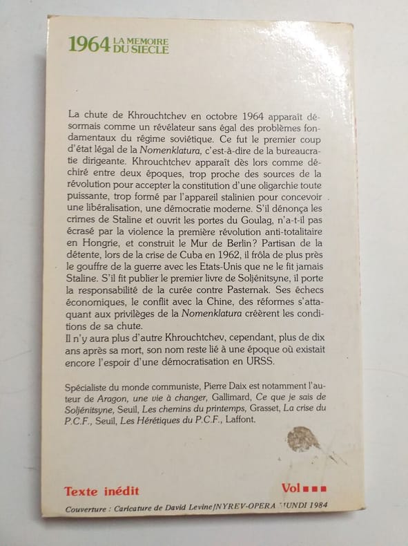 'La Mémoire du siècle, 1964', n° 22. Couverture de David Levine. Classification Dewey : 947-Europe de l'Est, URSS