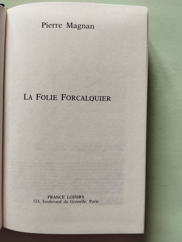 1995 1995. Pierre Magnan - La Folie Forcalquier / France Loisirs 1995