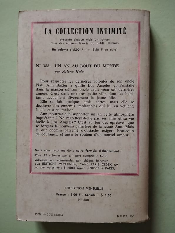 LES EDITIONS MONDIALES / COLLECTION INTIMITE N°388. 1979. In-12. Broché. Etat d'usage, Couv. légèrement passée, Dos satisfaisant, Quelques rousseurs. Environ 220 pages.. . . . Classification Dewey : 820-Littératures anglaise et anglo-saxonne