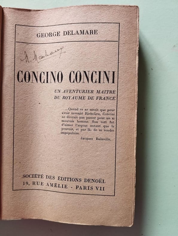 "On connaît cette curieuse et tragique histoire. Deux aventuriers italiens, Concino Concini et Leonora Galigaï pénètrent en France à la suite de Marie de Médicis. Ils s'épousent. Leur crédit auprès de la reine grandit sans cesse, à tel point que, sous la minorité de Louis XIII, ils croient pouvoir prendre en main les destinées du royaume. Concini, créé maréchal d'Ancre, est assassiné en 1617 par les intrigues de Luynes, nouveau prétendant au pouvoir. Sa femme est décapitée et brûlée comme sorcière, quelques mois plus tard. M. Delamare nous donne de cette extraordinaire aventure un récit allègre et pathétique. Familier des mémoires et des pamphlets du temps, il a su évoquer avec talent ces années troubles et indécises de la minorité de Louis XIII." (Joseph Lecler, Etudes)