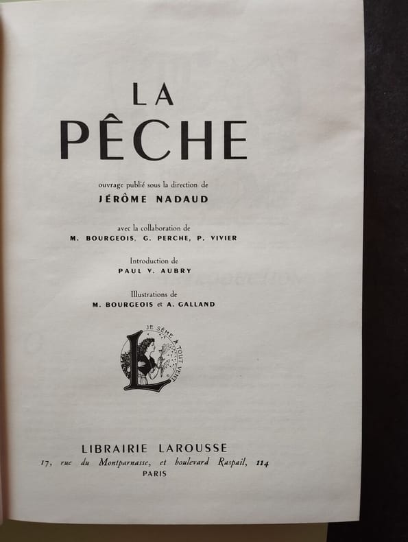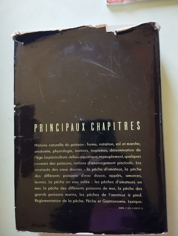 Larousse. non daté. In-8. Relié toilé. Etat d'usage, Coins frottés, Dos abîmé, Papier jauni. 590 pages, nombreuses photos et illustrations en noir et blanc dans le texte - tranches et plats frottés, déchirures sur les mors, coiffes abimées, ouvrage fendu au niveau des contreplats.. . . . Classification Dewey : 799.1-Pêche