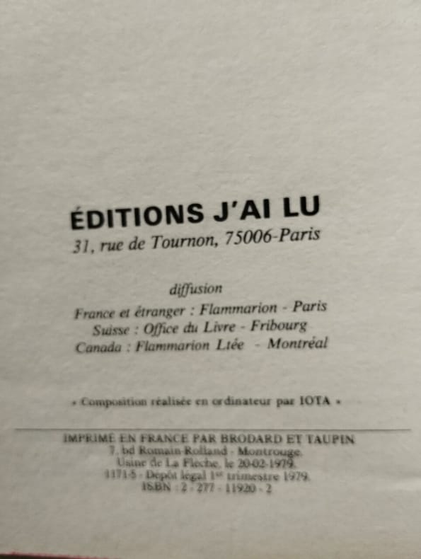 J'ai lu 1979 200 pages in12. 1979. Broché. 200 pages.