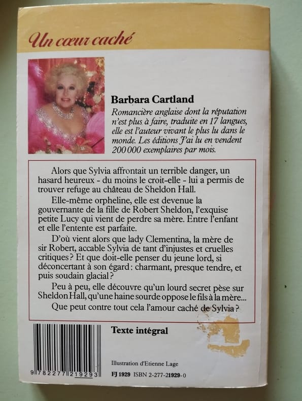 Bibliothèque Barbara Cartland. 1984. In-8. Relié. Etat d'usage, Couv. convenable, Dos satisfaisant, Intérieur acceptable. 191 pages - jaquette conservée. Avec Jaquette. . . Classification Dewey : 840.091-XX ème siècle