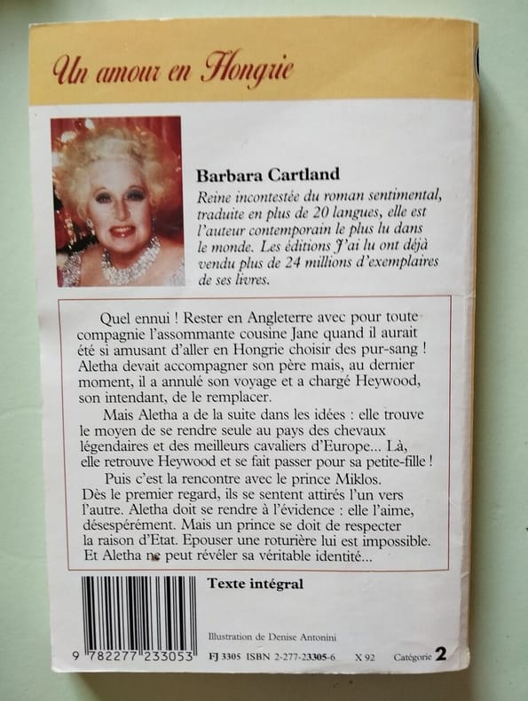 1992 1992. Barbara Cartland :Un amour en Hongrie / J'ai lu 1992 LBN11