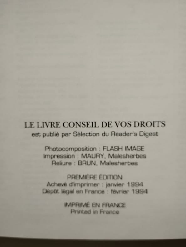 Sélection du Reader's Digest. 1994. In-8. Relié. Bon état, Couv. convenable, Dos satisfaisant, Intérieur frais. 480 p.. . . . Classification Dewey : 340-Droit