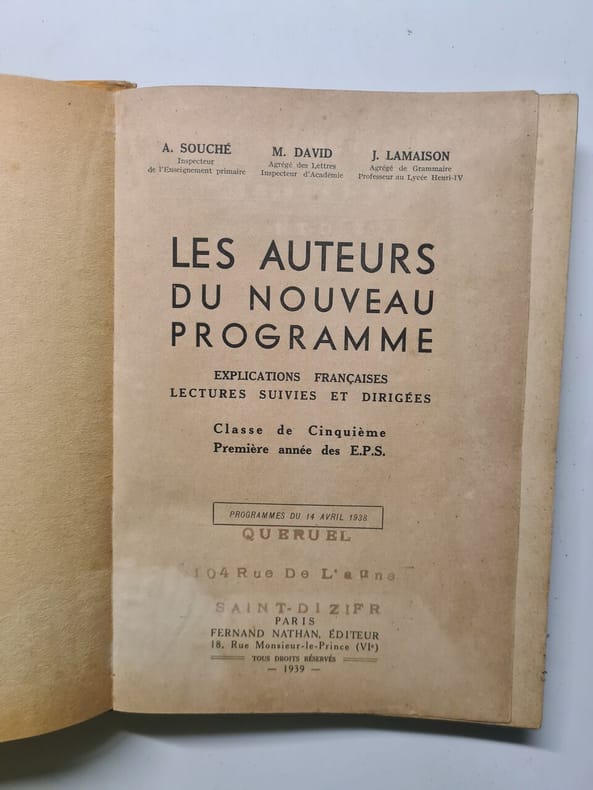 Livre. Programme de 1947. Editions Fernand Nathan, 1957.