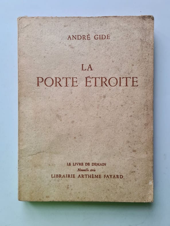 Paris Mercure de France 1909 273 pp. In-12. Relié. Superbe exemplaire dans une fine reliure doublée. 1 volume. ÉDITION ORIGINALE tirée à 300 exemplaires sur vergé d'Arches seulement, avec un trèfle à quatre feuilles vert à la justification du tirage.Premier succès littéraire de Gide au-delà du seul cercle des gens de lettres lui permettant de ne plus publier à perte, La porte étroite avait paru en 1909 dans les tous premiers numéros de la Nouvelle Revue Française.Exemplaire enrichi d?un ENVOI AUTOGRAPHE SIGNÉ d?André Gide au poète symboliste belge Albert Mockel.Créateur de la revue La Wallonie (dont Gide fut un des contributeurs) en 1886, Albert Mockel (1866-1945) fut un des premiers militants wallons autonomiste. Disciple de Mallarmé, il est notamment l'auteur du recueil Chantefable un peu naïve (1891) et des essais critiques Propos de littérature (1894), Stéphane Mallarmé, un héros (1898), Charles Van Lerberghe (1904) et Émile Verhaeren, poète de l'énergie (1917). Il a collaboré à de nombreuses revues telles La Plume et le Mercure de France. Sa correspondance avec André Gide a été publiée en 1975.Superbe exemplaire dans une fine reliure doublée.
