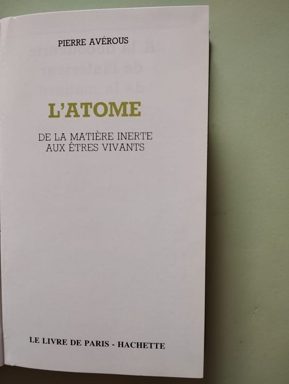 Sans date. Pierre Avérous: L'Atome de la matière inerte aux êtres vivants/ Hachette . bon état