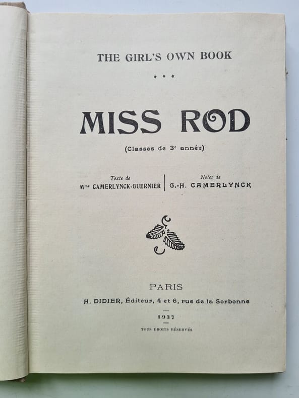 """The girl's own book"". 4è édition. Notes de C.H.Camerlynck. Classification Dewey : 420-Langue anglaise. Anglo-saxon"