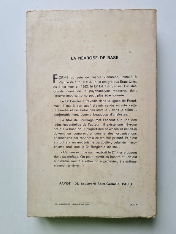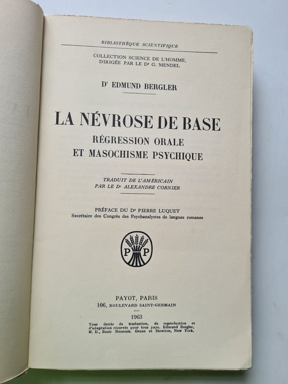 Paris, Payot, 1963 ; grand in-8 (142 x 228 mm), 362 pp., broché. Bibliothèque Scientifique. Collection Sciences de l'Homme dirigée par le Dr G. Mendel. Traduit de l’américain par le Dr Alexandre Cornier. Préface du Dr Pierre Kuquet.