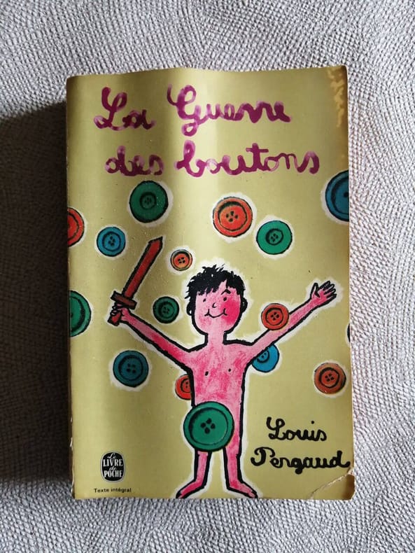 La Guerre des boutons est un roman français écrit par Louis Pergaud, écrivain franc-comtois, et publié en 1912. Il décrit la « guerre » que se livrent les bandes d'enfants de deux villages rivaux, Longeverne et Velrans, dans la campagne franc-comtoise de la fin du XIXe siècle. L'auteur s'est inspiré de la vie dans le village de Landresse, dans le département du Doubs, où il a enseigné deux ans. Le titre vient du butin de cette guerre, constitué en majorité par les boutons dont les vaincus sont dépouillés par les vainqueurs. Le récit, pour la plus grande partie, raconte l'histoire du point de vue des enfants de Longeverne. Louis Pergaud remporta le prix Goncourt avec De Goupil à Margot, Histoire de bêtes en 1910, mais c'est avec La Guerre des boutons qu'il rencontra le succès. Il fut tué près de Marchéville (dans les environs de Verdun) le 4 avril 1915. Insolation au dos et légères usures et salissures à l'étui.