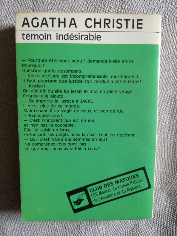 1978 1978. Agatha Christie : Témoin indésirable / Le club des masques 1978 LBN30
