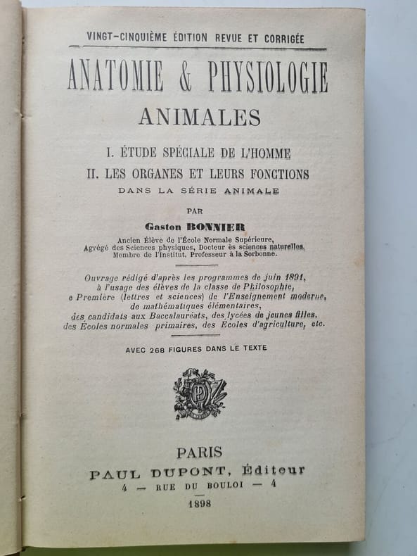 Librairie Classique De Andre Guedon Paris "collection "" histoire naturelle des êtres vivants "" - avec 361 clichés comprenant 700 figures - 434 pages en format 14 - 22 cm - reliure rigide en percaline"