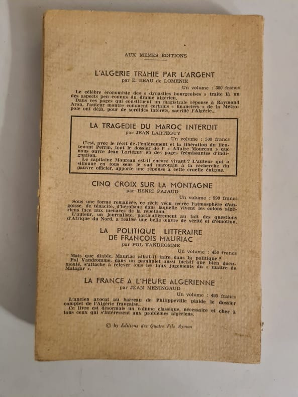 Les secrets de l'expédition de Suez. — "Violemment hostile à l'« opération mousquetaire », l'auteur prétend révéler, comme l'indique le sous-titre du livre, « ce que les frères Bromberger n'ont pas pu dire » : il dénonce les « contre-vérités » sur lesquelles s'est appuyée une expédition qui a causé à la France de graves préjudices matériels et moraux." (Revue française de science politique, 1958)